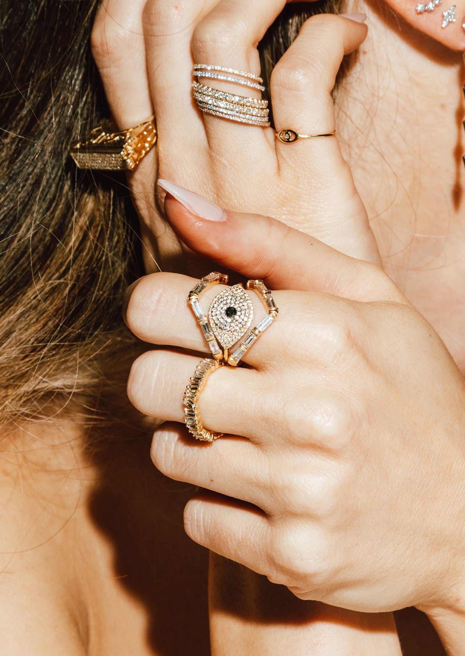 The ultimate baguette ring, reminding you of your place in the stars. Wear as a wedding band, engagement ring, or an edgy statement stack.