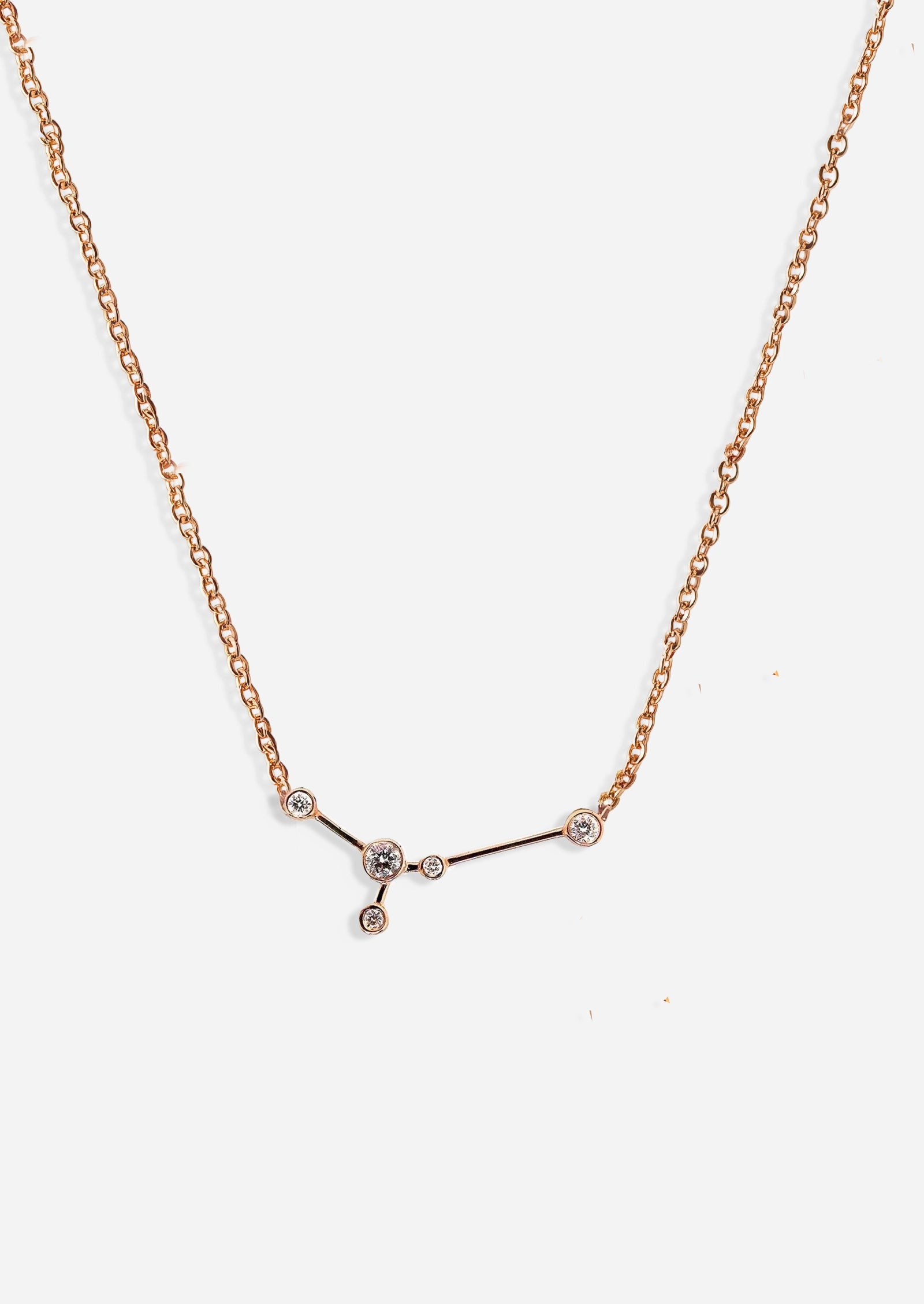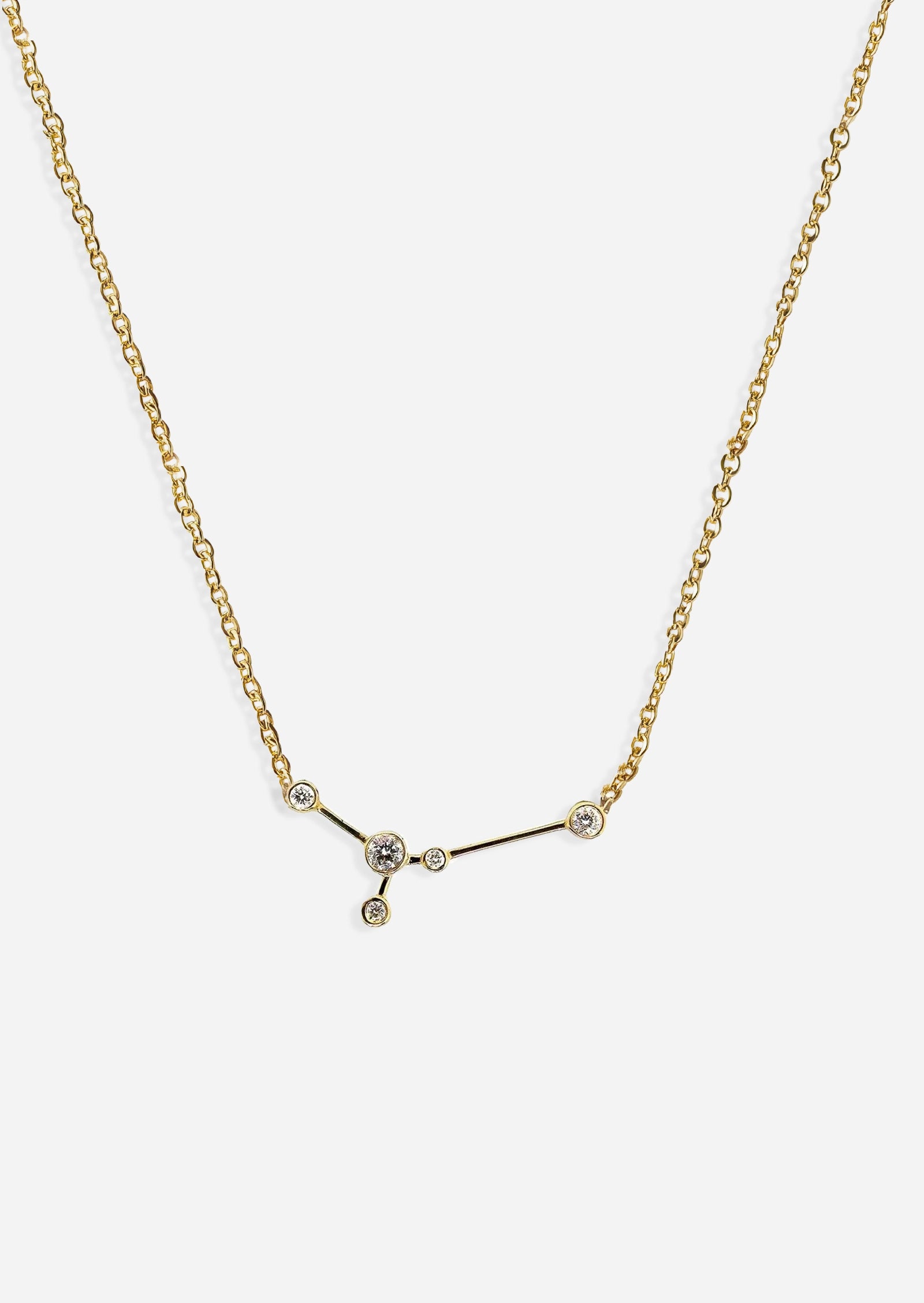 The Cancer Zodiac Necklace features a scattered arrangement of floating diamonds in varying sizes, bezel set in solid 14K gold, which float to form the constellation: the crab. Wear it on its own, or as the anchor for your layering necklaces.