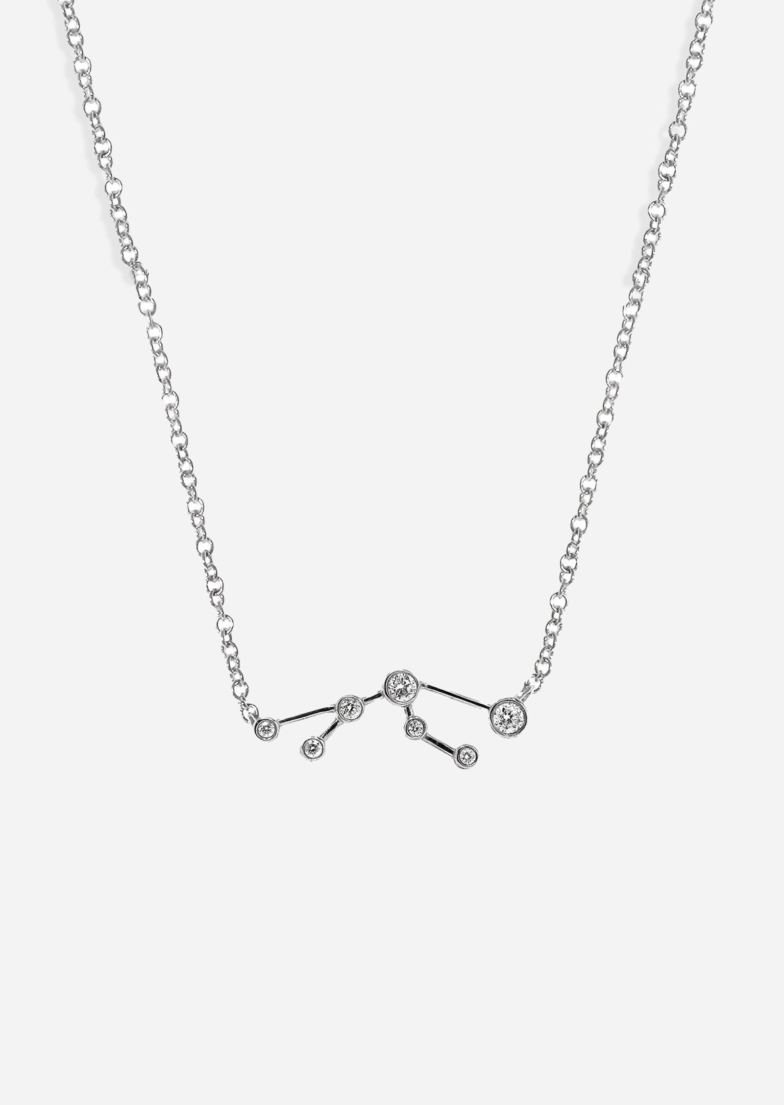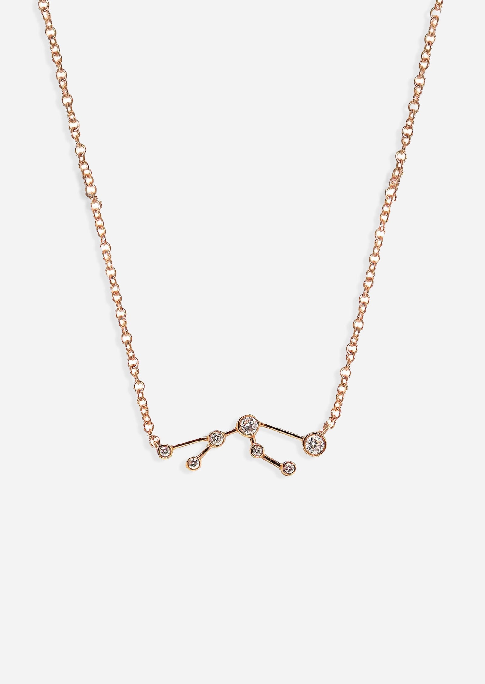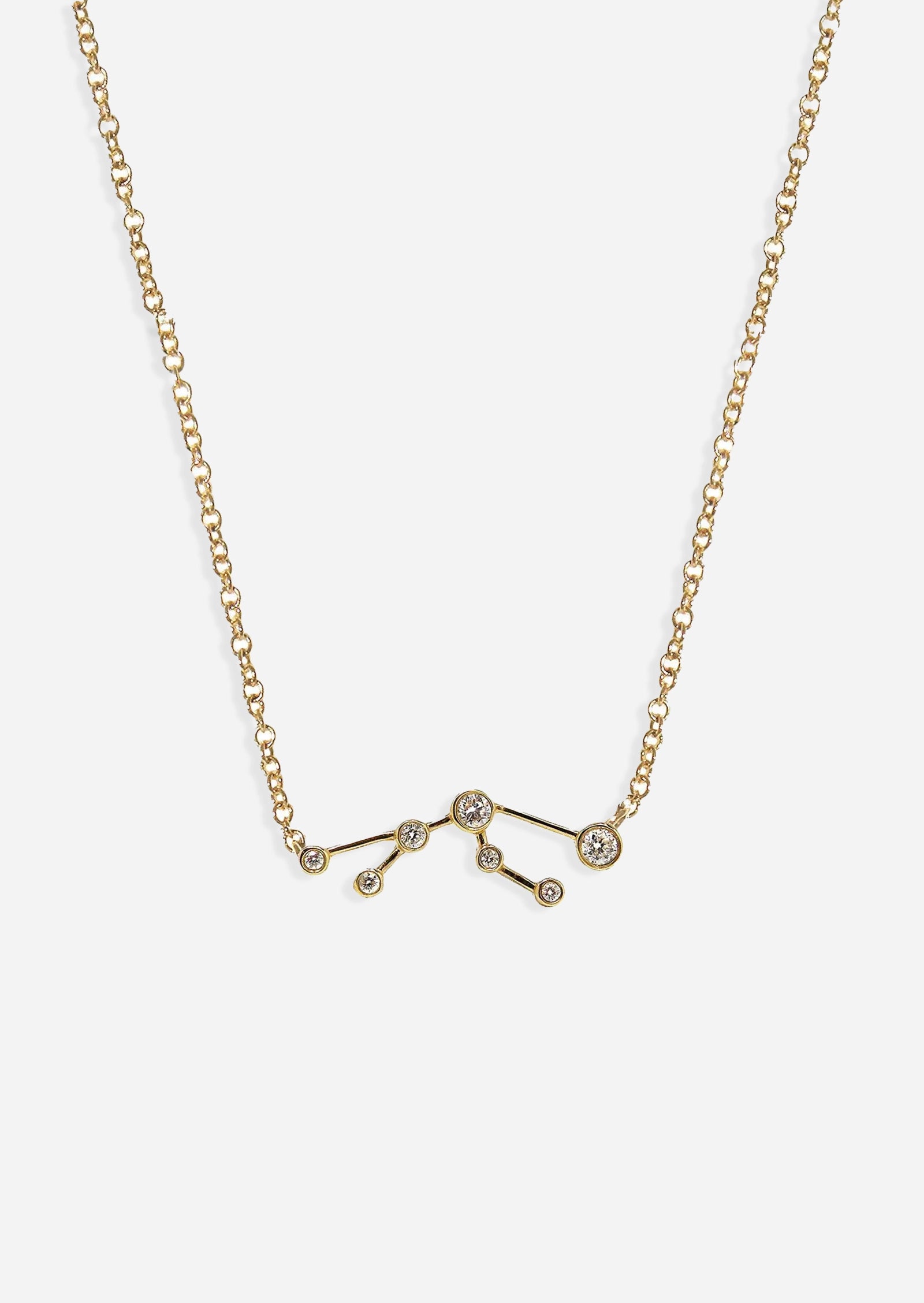 The Scorpio Zodiac Necklace features a scattered arrangement of floating diamonds in varying sizes, bezel set in solid 14K gold, which float to form the constellation: the scorpion. Wear it on its own, or as the anchor for your layering necklaces.