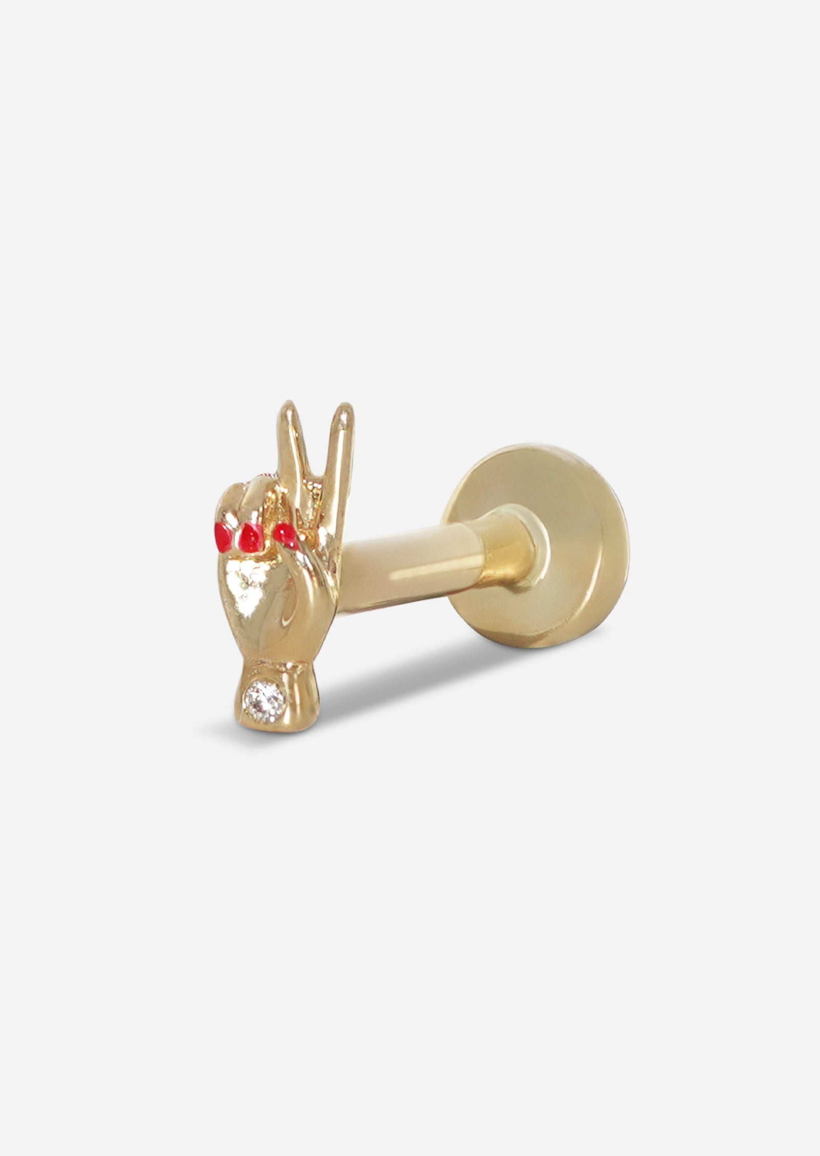 Peace signs and clear minds. Add this Peace Hand with diamond base and red enamel nails to your ear stack for an added touch of tranquility.