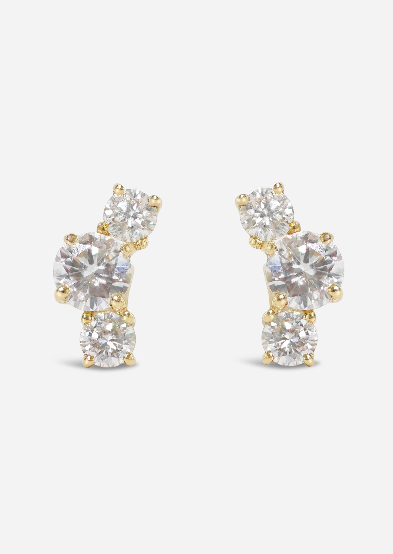Our best-selling stud goes extra luxe with one large round prong-set diamond complimented by two smaller prong-set diamonds on either side in a garland style curve. This triple diamond versatile piece can be worn on your upper lobe or tucked into the natural curvature of the helix or conch. Designed with our signature evil eye threaded flat back for extra comfort.