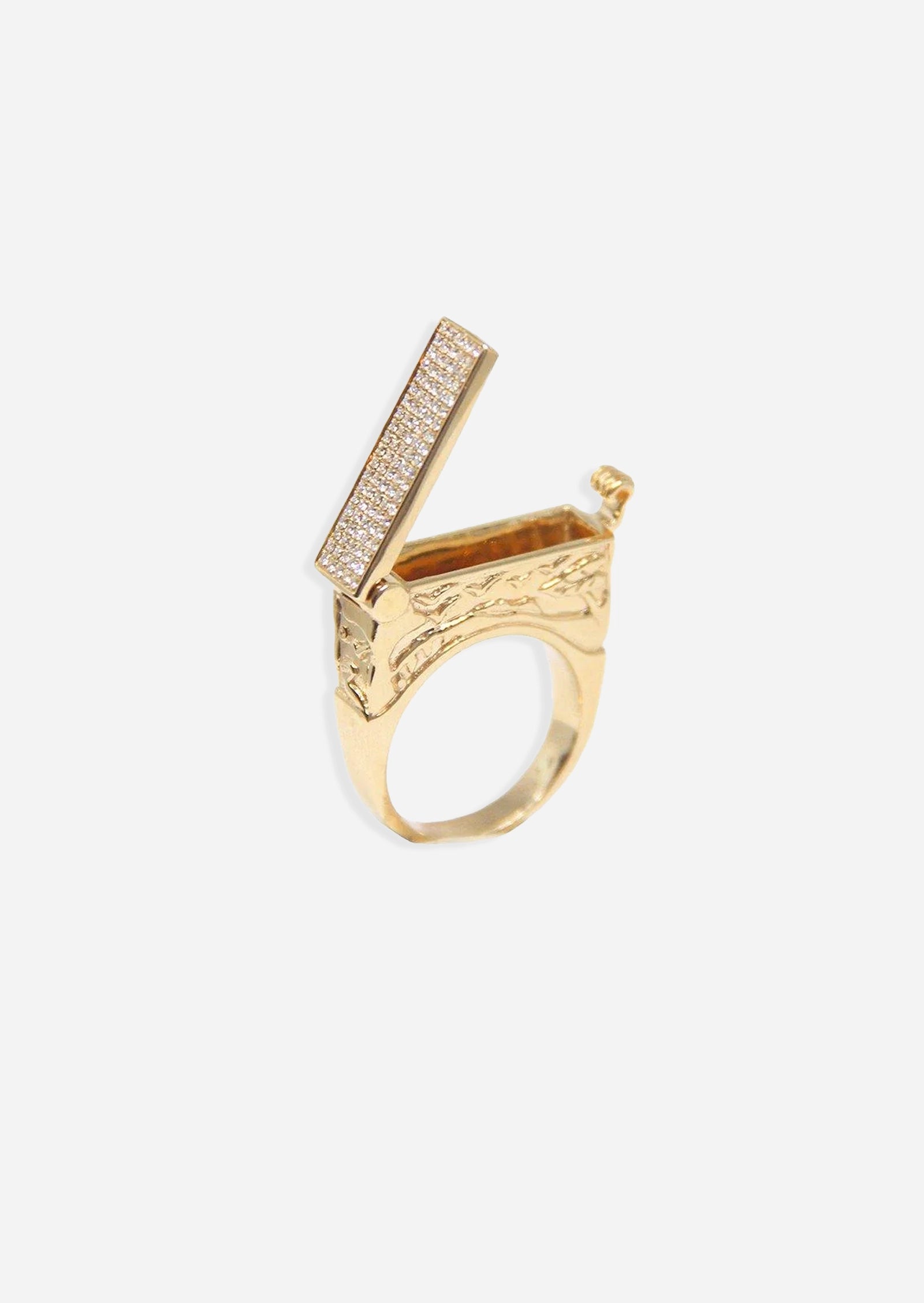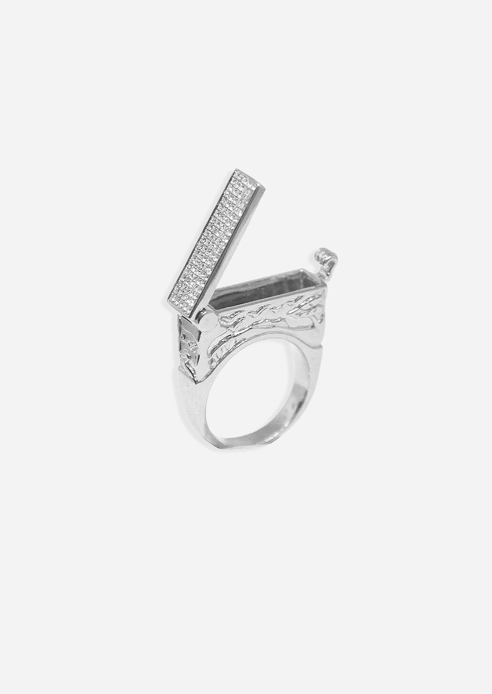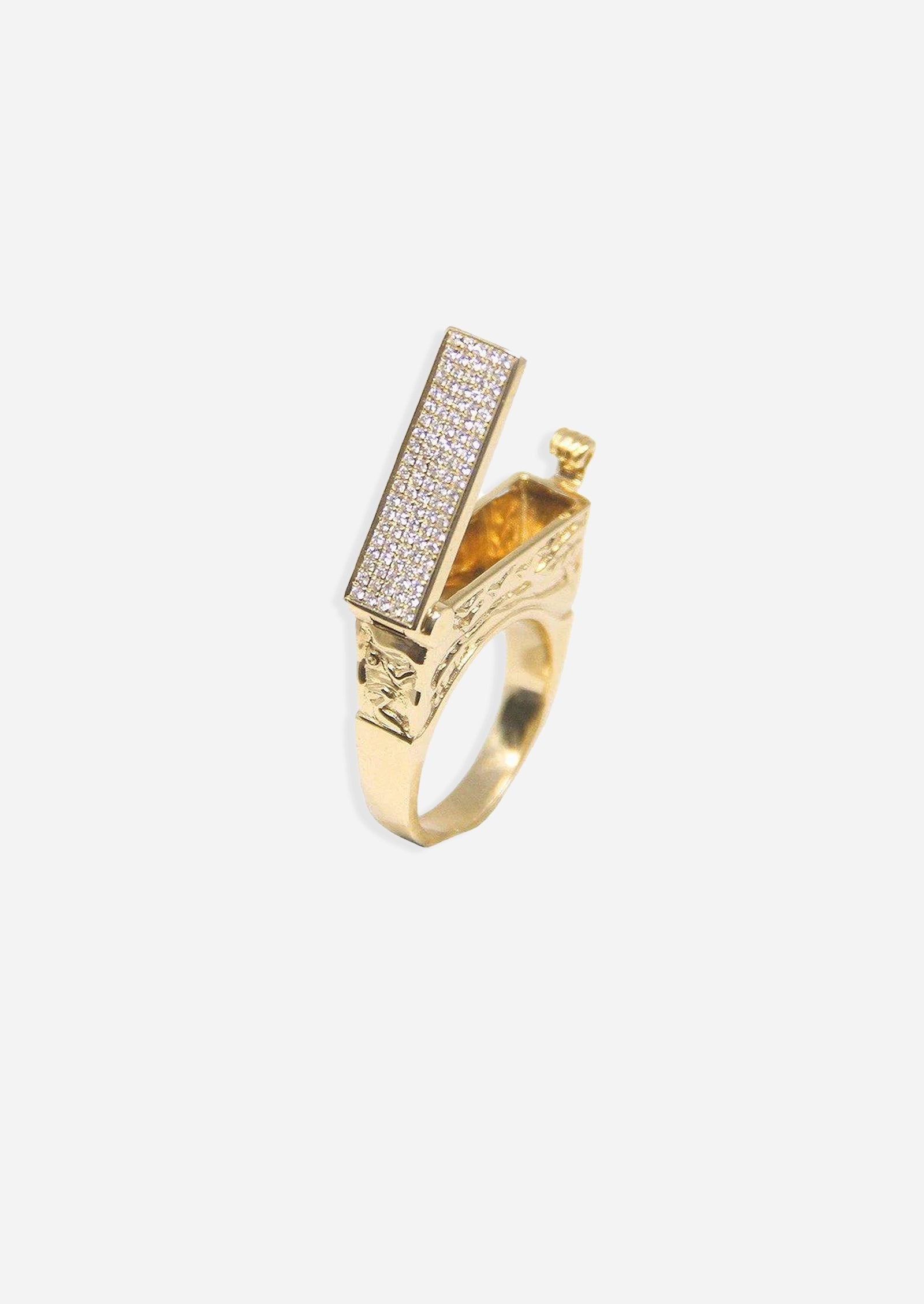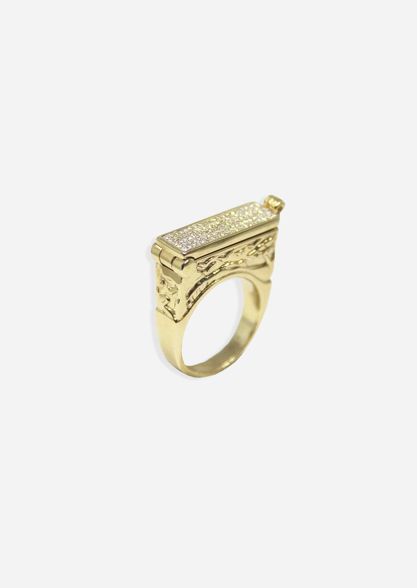 This ring has secrets. Used in the 16th Century to hide poison beneath its compartment, we have the message "Memento Mori" inscribed in the hidden chest. Savor your days, remember that you have to die. Relief work of the Louisiana bayou shines on the sides.