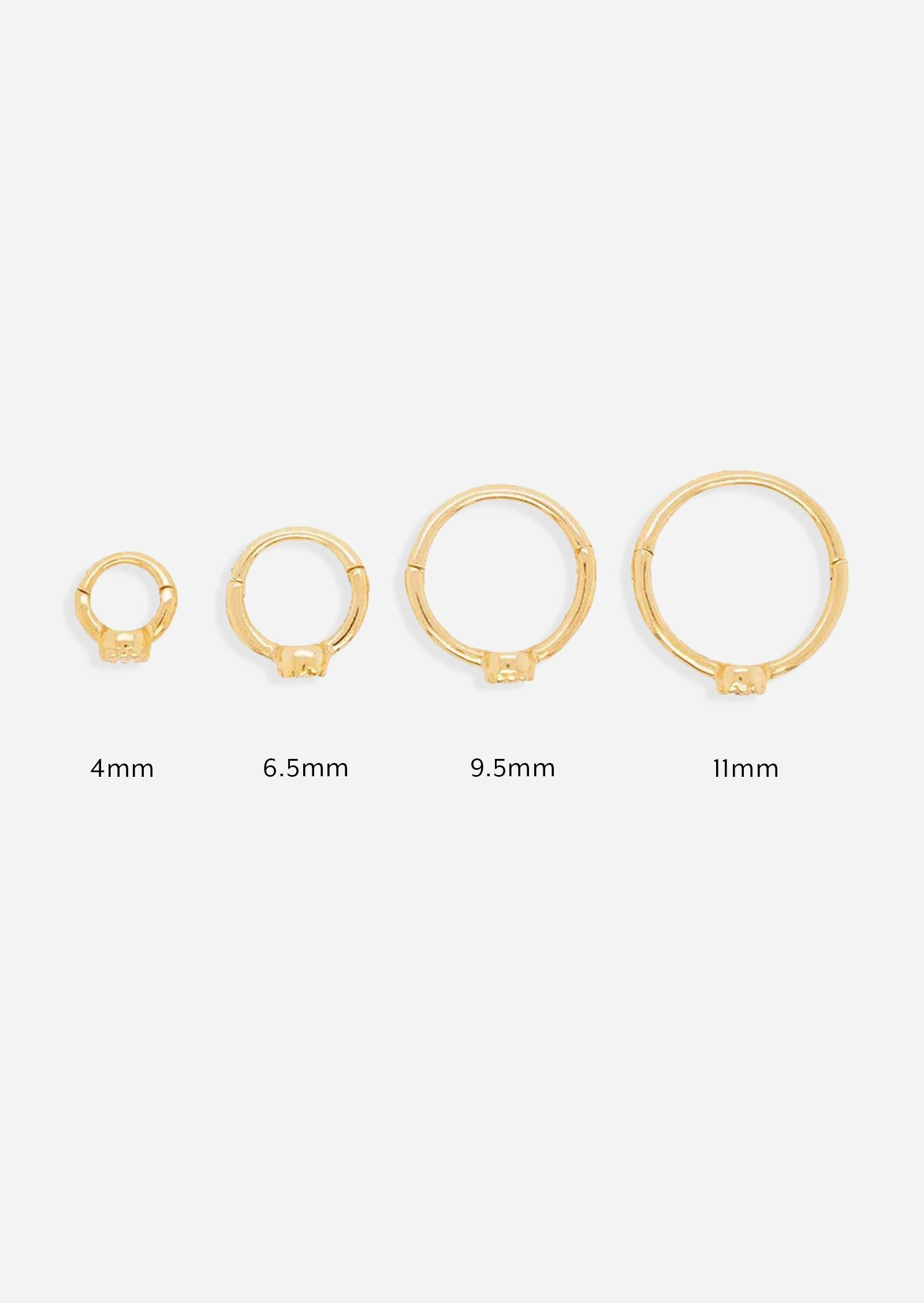 A solid 14K gold clicker hoop with a bezel set round diamond, designed in multiple sizes to compliment every ear stack.