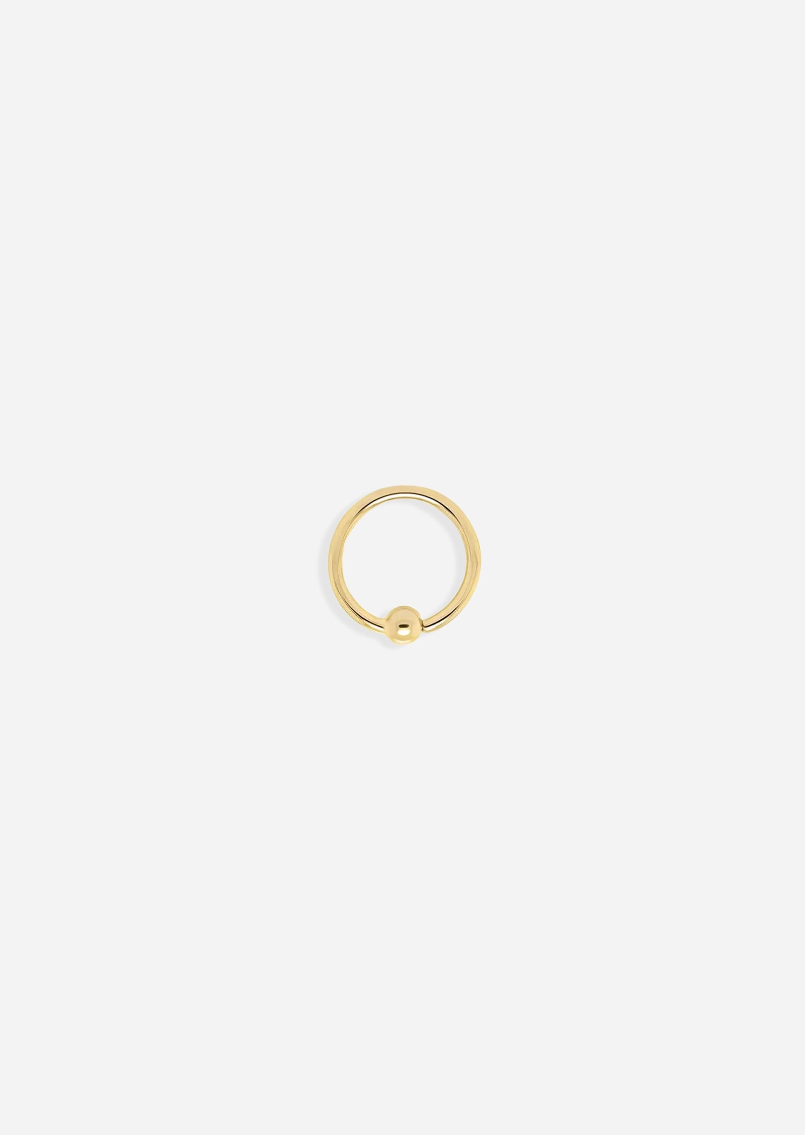 To insert your hoop, hold the hoop on either side of the seam and gently twist the ends away from each other. Twist the ends back after the hoop is inserted.