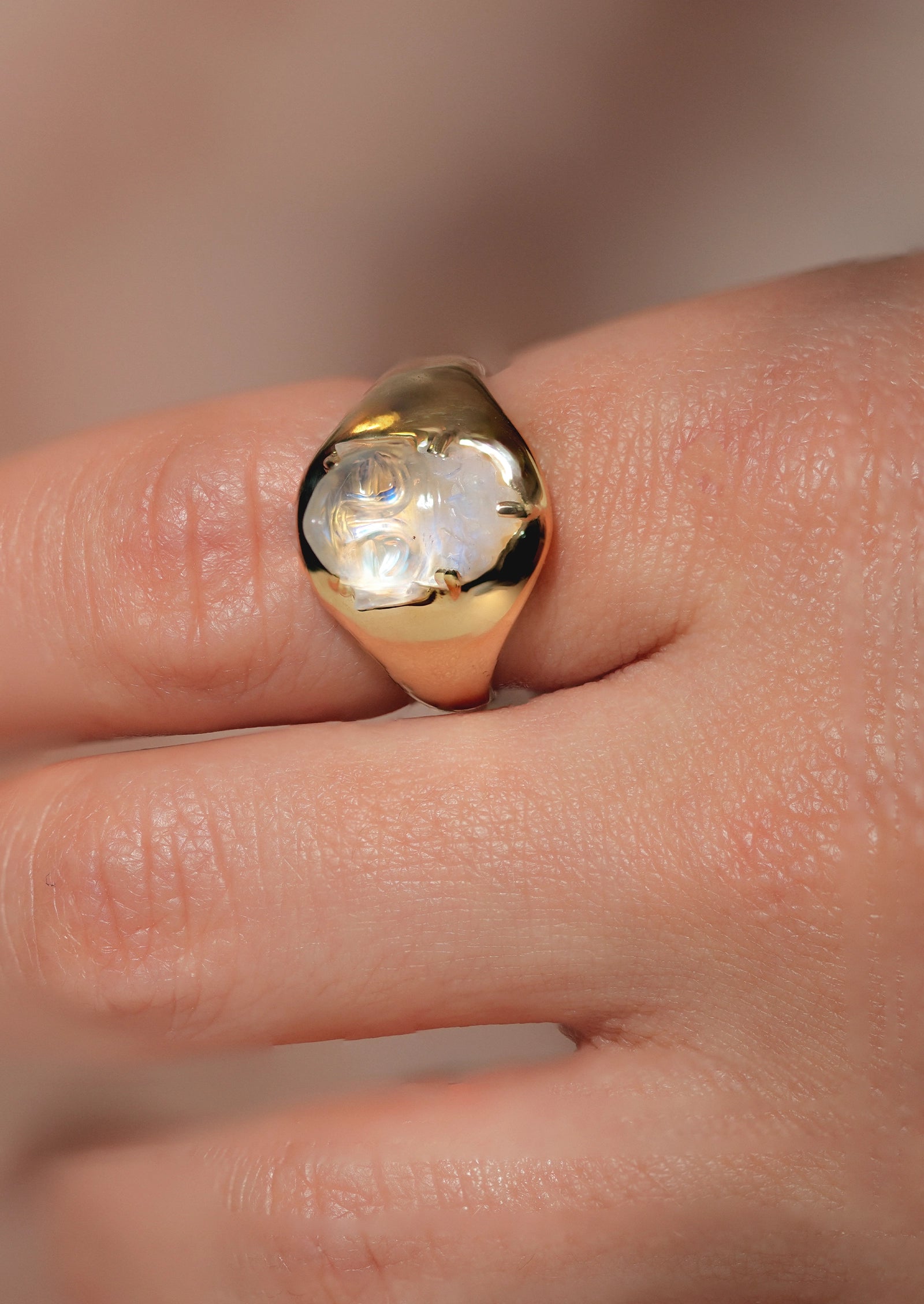 Rainbow Moonstone Buddha Ring