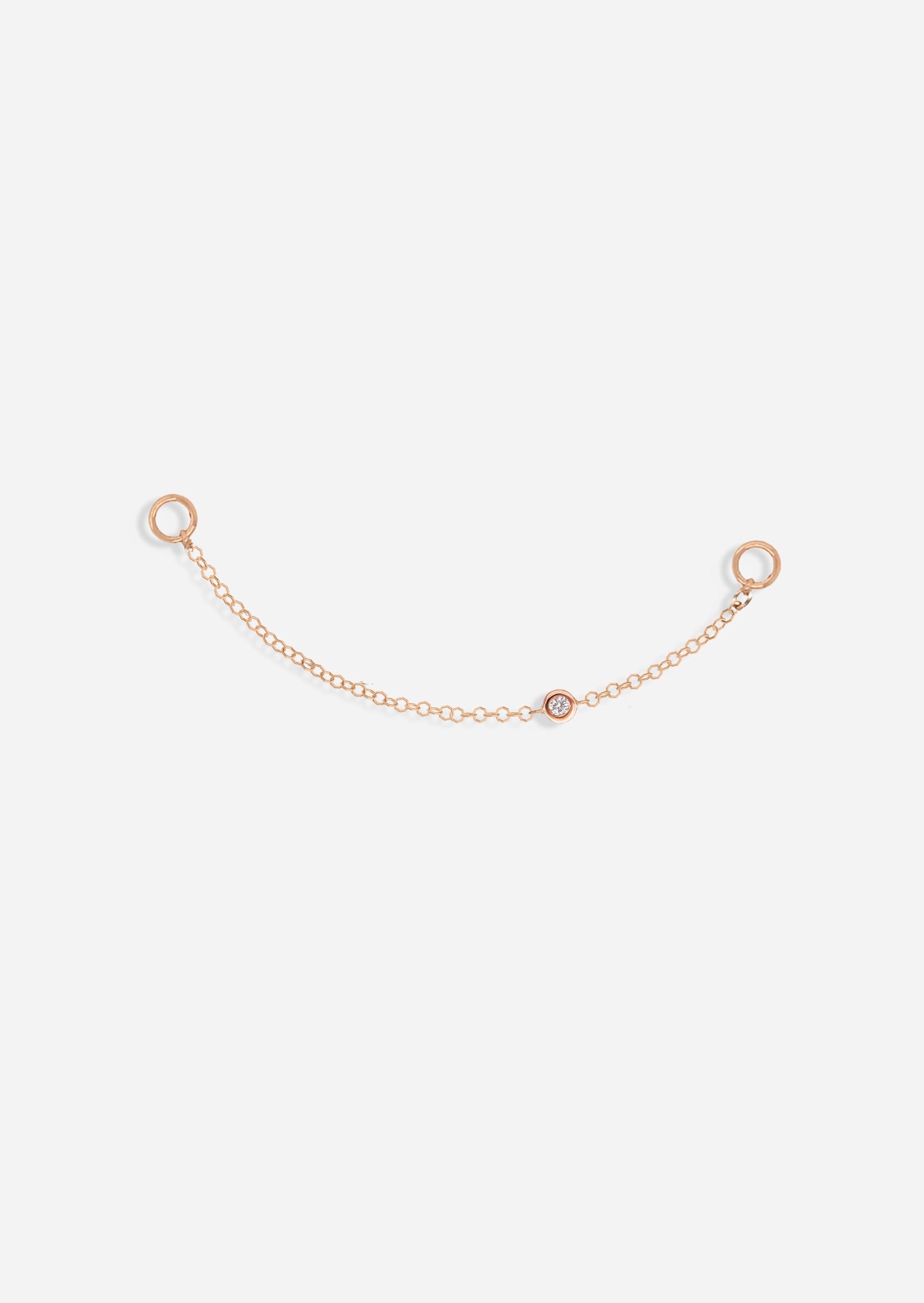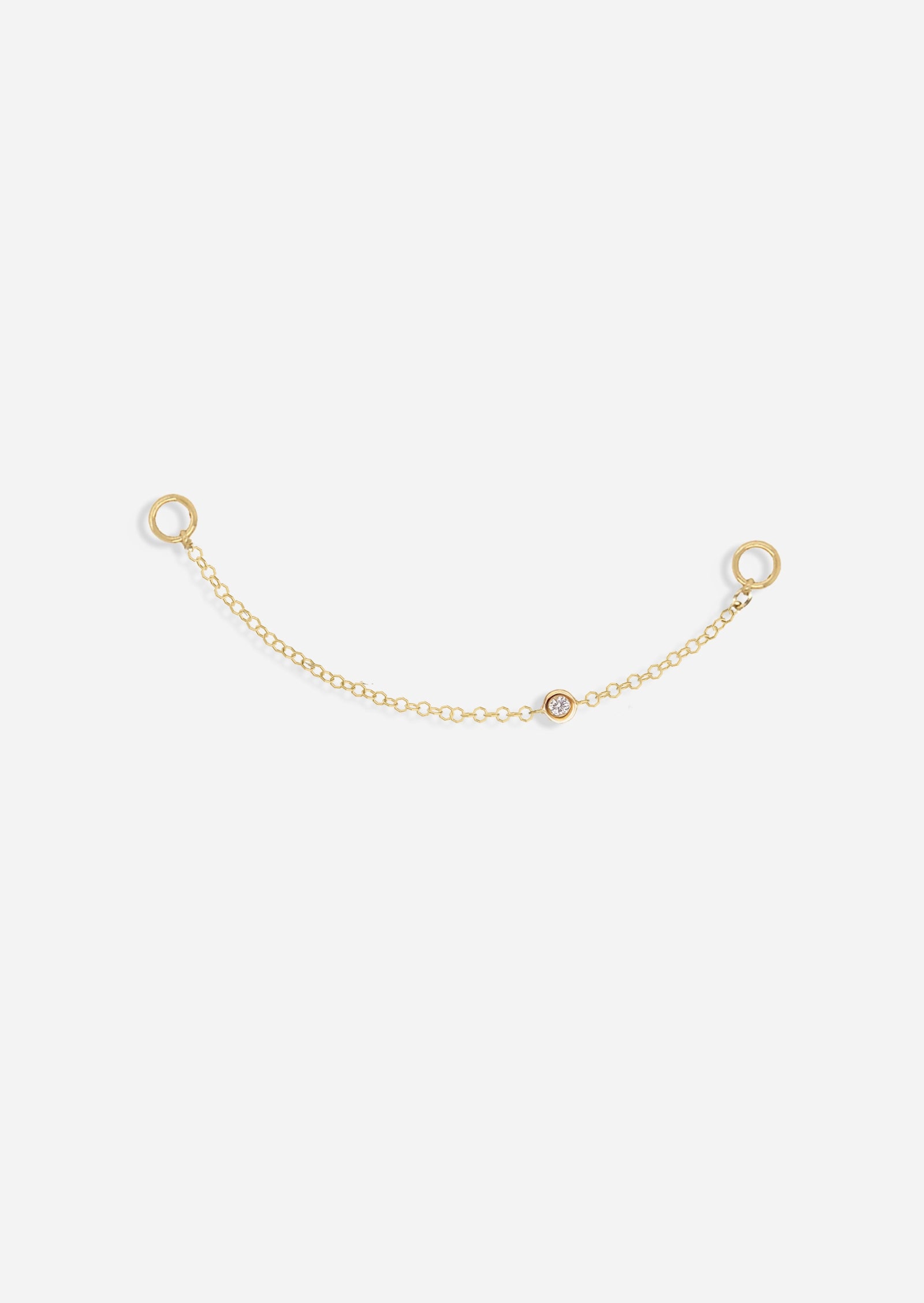 A delicate chain you can mix and match with your hoops and studs. This chain features a bezel set diamond along its length to give your stack just a little something extra.