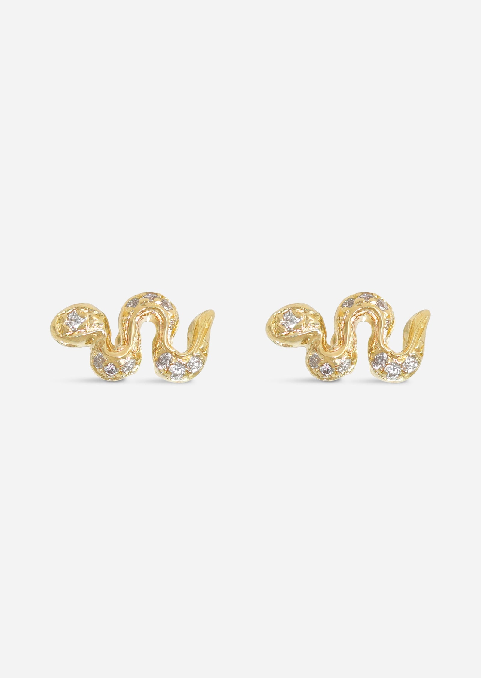 The mini snake stud with our signature evil eye threaded flat back. The perfect dainty addition to your ear party to leave in and never take out.
