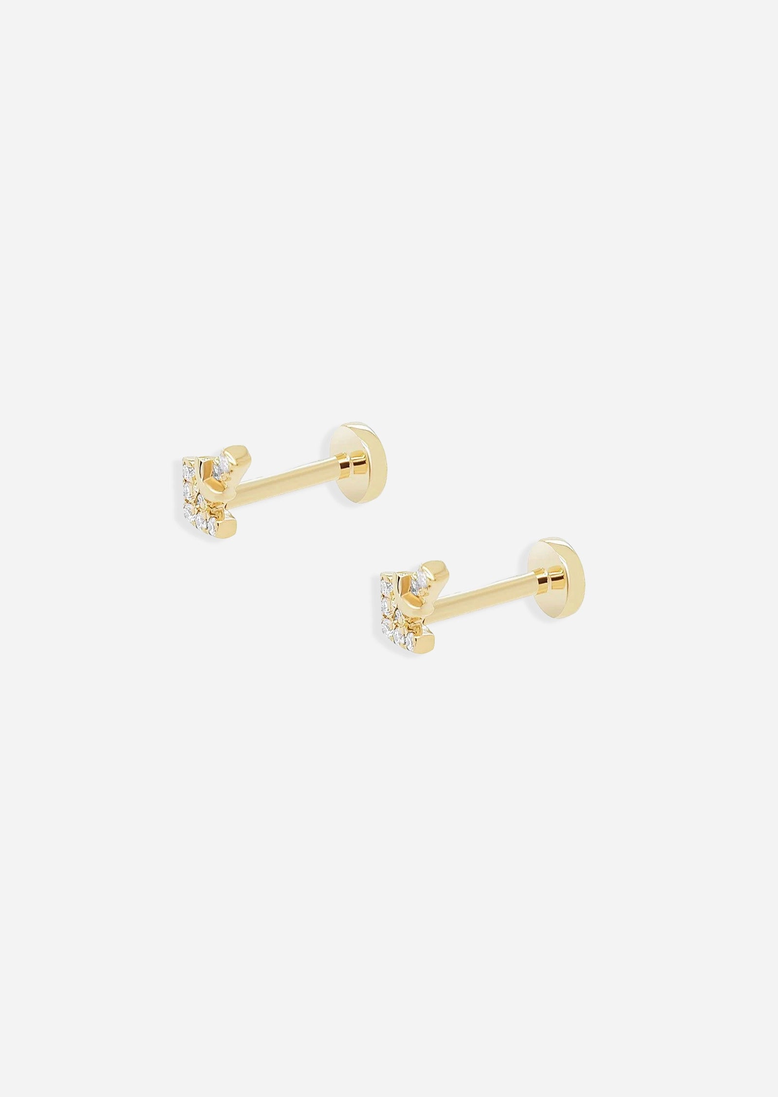 The Sagittarius stud features diamonds intricately set in solid 14K gold to form its zodiac symbol: the archer. Shine with your sun sign, or build an ear stack with your moon + rising. We love wearing this piece in the upper lobe, helix, or flat piercings. Designed with our signature evil eye threaded flat back for extra comfort and daily wear.