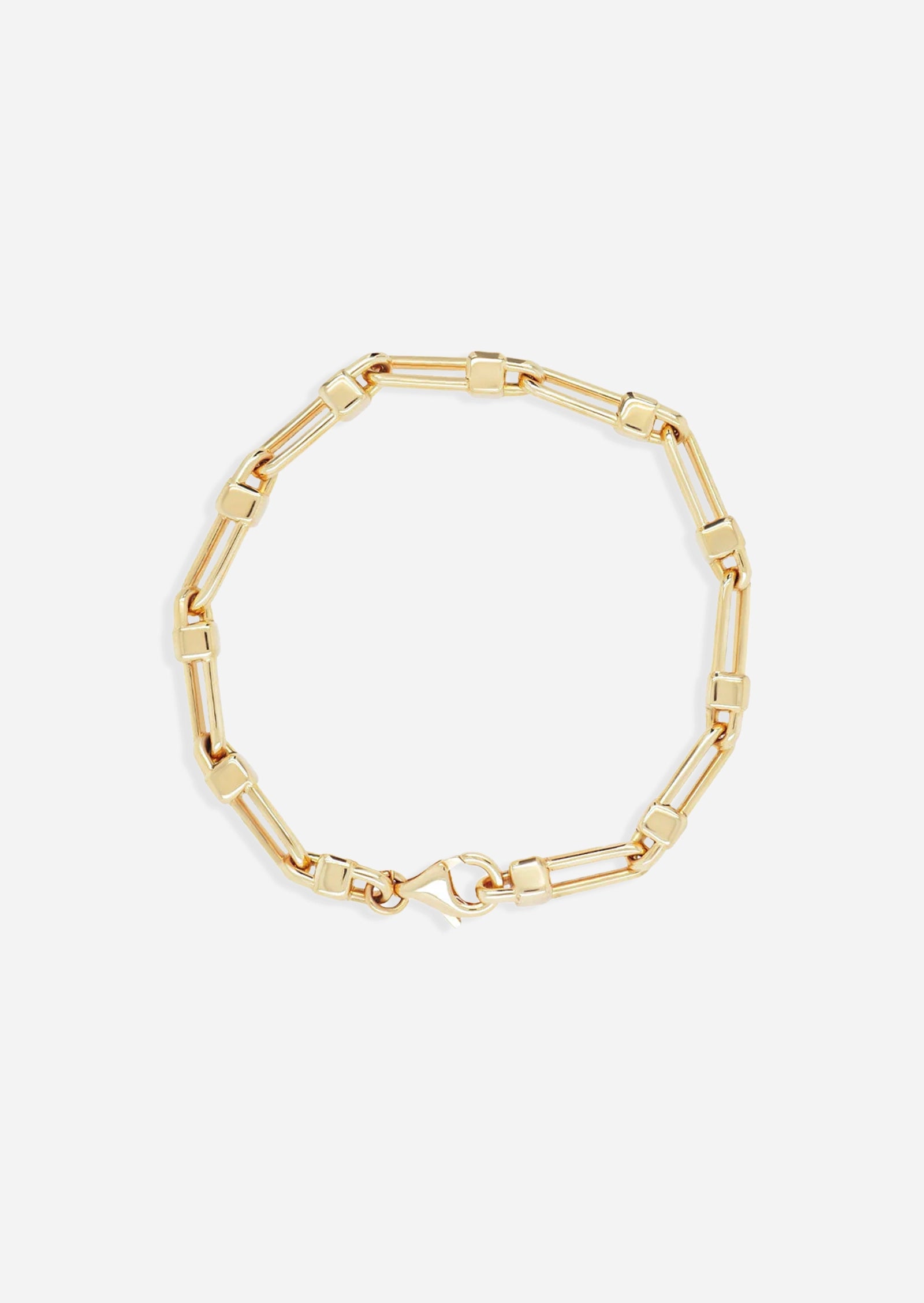 Keep your innermost energy secure with this elongated lock chain bracelet.